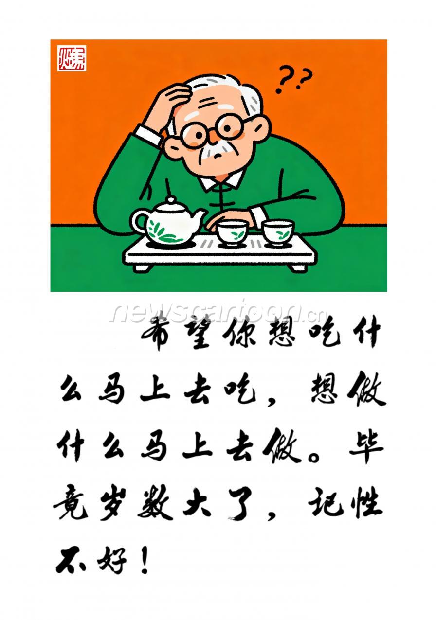 标题:希望你想吃什么马上去吃,想做什么马上去做。毕竟岁数大了,记性不好!