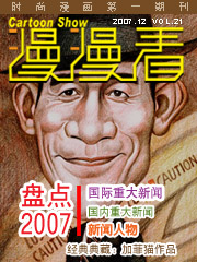 本期内容:★热点聚焦——华南虎照片事件★ 国际政治——盘点2007国际重大新闻★ 海外搜索——国外时事漫画欣赏★ 麻辣社会——盘点2007国内重大新闻★ 哈哈镜——盘点2007新闻人物★ 漫画酷——冰儿萧萧的插画作品★ 幽默连连——梦之冒险★ 经典典藏——吉姆•戴维斯作品《加菲猫》欣赏★ 每期推荐——张兮兮