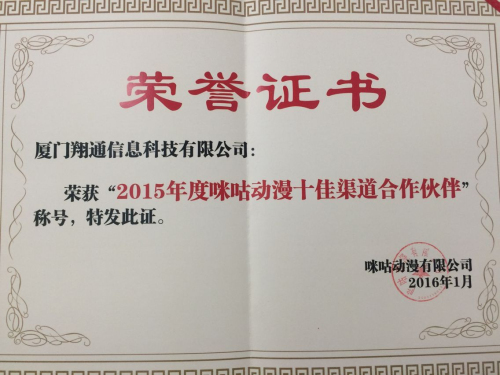 会上,咪咕动漫对合作伙伴成绩表示肯定,同时公布了全年十佳渠道合作伙伴的名单,翔通动漫获评2015年度咪咕动漫十佳渠道合作伙伴称号。