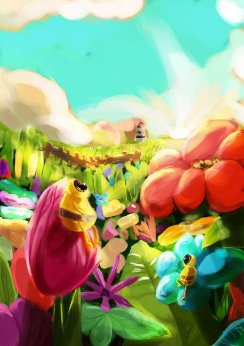 说明: 在五颜六色的原野上,小蜜蜂在观赏者第一缕阳光的出现。绿意盎然的早上我们在睡醒的同时是否也在意过早上的阳光,窗外的一抹绿意是否同现在一样鲜亮,城市的风景是否还存在这样,我喜欢这样的风景,但是这样景色很少了