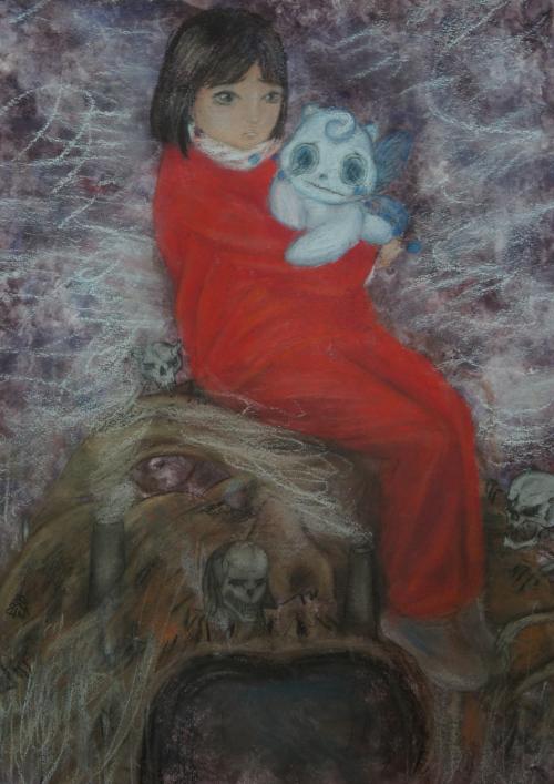 (小女孩——身穿红色棉袄,她是微弱的希望; 云宝宝——通体棉花状,并加以熊猫的原形和精灵的翅膀,它是地球上仅存的干净空气,是久经人类“摧残”后存留下来稀有小动物。)