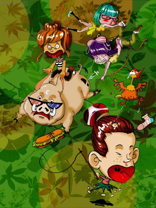 本插画力求表达出:作为万物之灵的人类应该对充满物欲和名利追逐的生活方式和行为做出反思,从大自然中获取生活的乐趣和信心,从自然中寻求精神之价值和生命之远景