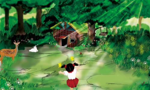 说明: 一个迷路的小女孩,在精灵的带领下来到了一片美丽漂亮的童话般的绿色森林,而惊喜不已。