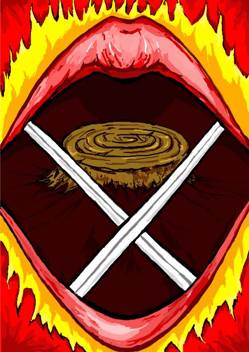 说明: 本作品以保护自然资源:树木为题,呼唤人类不要把树转变成嘴中的筷子