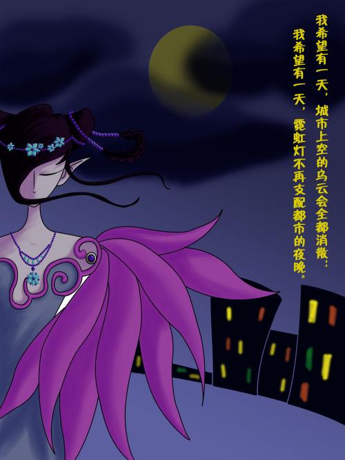 说明: 我希望有一天城市上空的乌云会全都消散,我希望有一天,霓虹灯不再支配都市的夜晚。