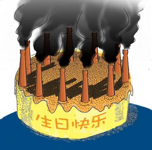 说明: 给地球的生日蛋糕插上的不是蜡烛,而是各种烟囱污染,让人深思!