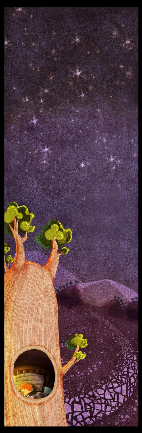 说明: 此插画意在表现梦想中的家园,以孩子的视角为我们描绘了一幅充满梦幻安逸的画面,人与自然的和谐关系。