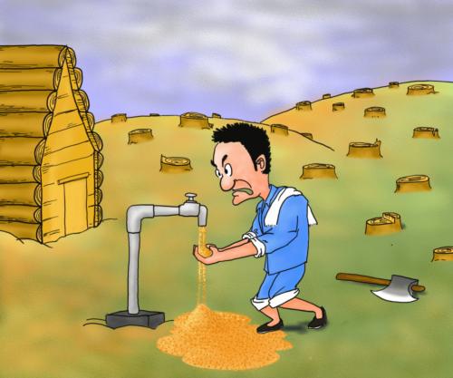 说明: 有感于乱砍滥伐导致土地荒漠化,最终危害人类自身。自作自受,可悲!可叹!可恨!