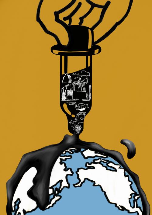 说明: 图片选用滴灌作为元素,操纵者正是人类,滴管里的污染物全是人类所制造,危害的也是我们的地球,我们除了默默承受外也必须行动起来保护我们的地球。