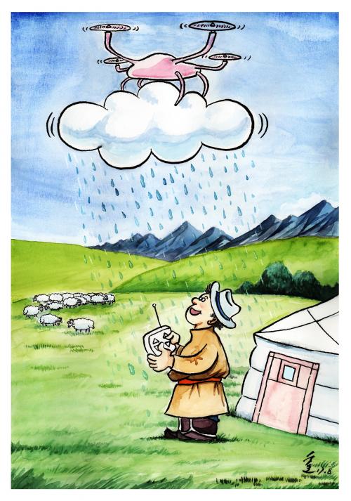 说明: 爱护草原 热爱家乡的牧民用这种方式滋润草原