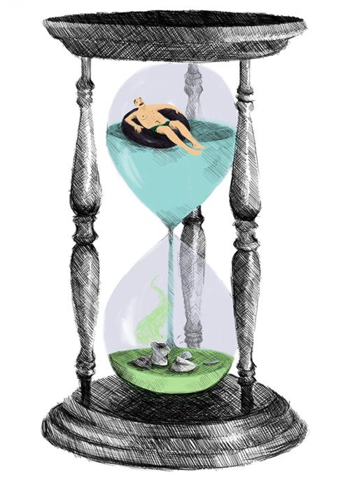 说明: water in an hourglass symbolizes its exhaustibility, but we still waste a lot of it
