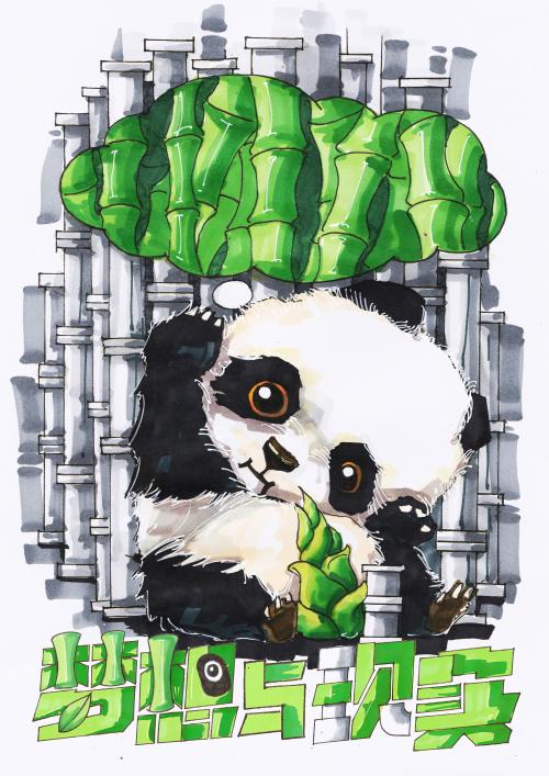 说明: 当今社会工业的发展给自然环境带来了极大的破坏,城市的扩张使得大量的绿地消失,动物失去了他们的家园。这件作品就是通过一个熊猫的视角来表现,工业管道象征了人类的工业文明,将熊猫生存环境破坏殆尽;同时,作品巧妙地运用了工业管道和竹子的相似性,来表达现实的残酷。